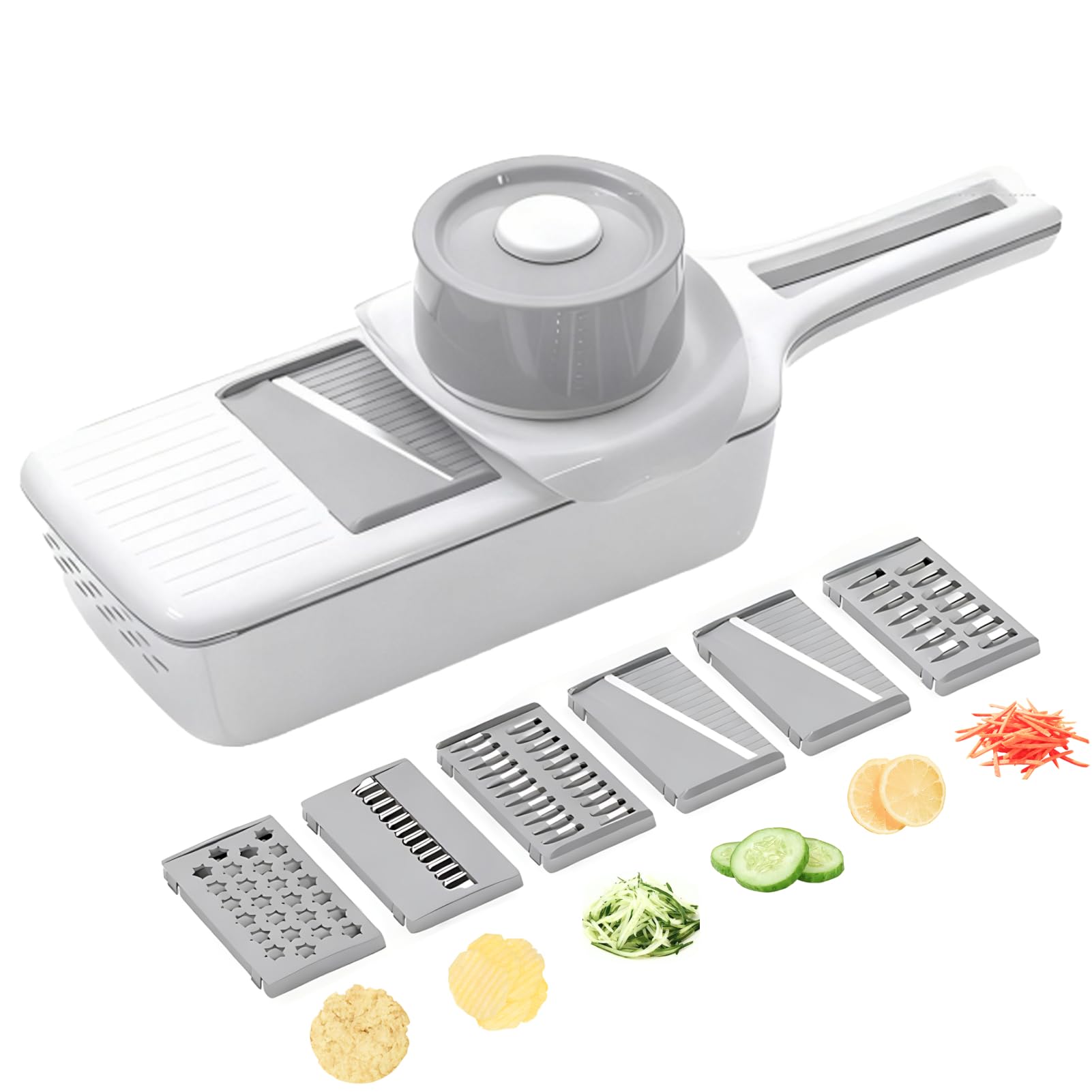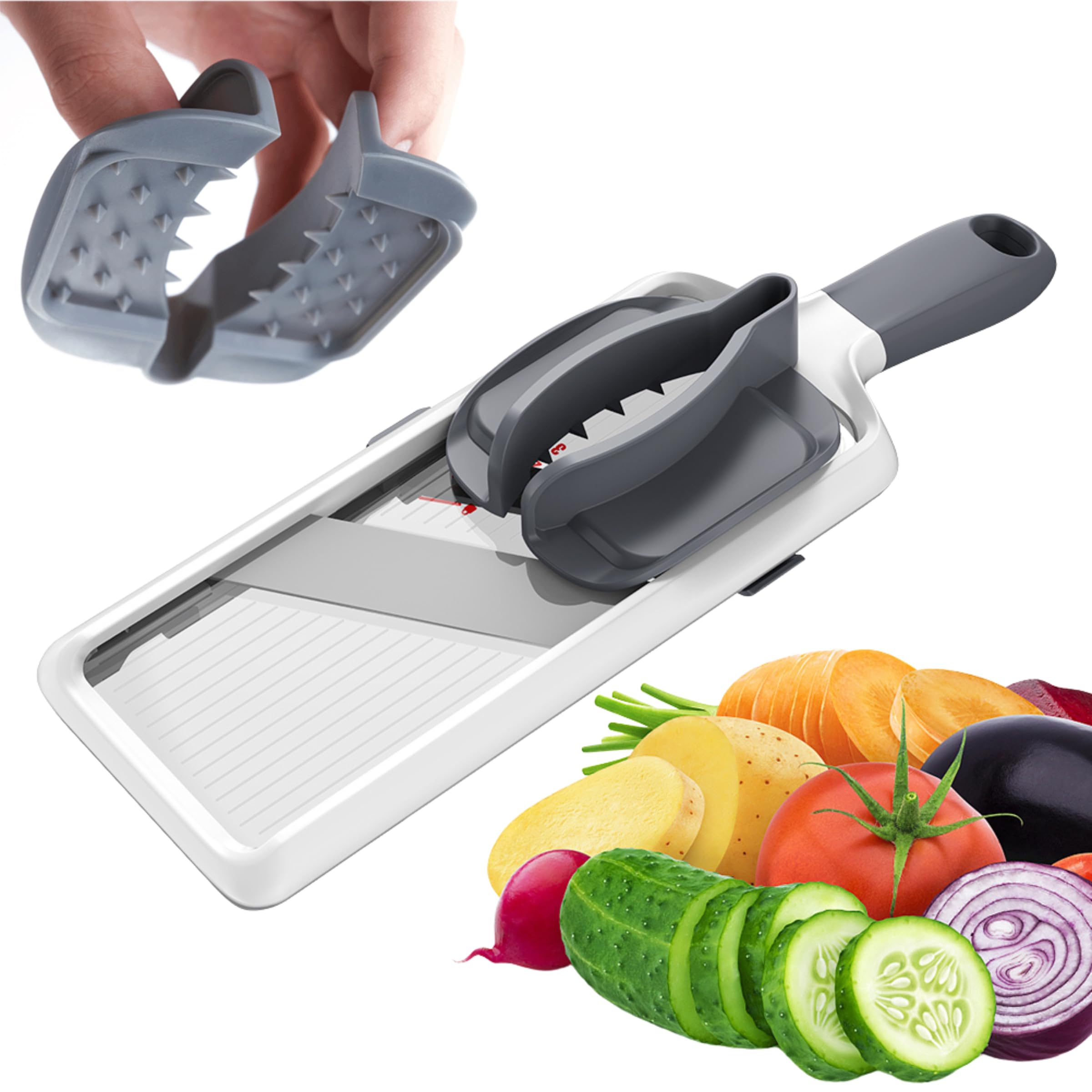 Multi Handheld Mandoline Slicer - Adjustable Stainless Steel Blade, Comfort Grip, Safety Features, Easy to Clean, Ideal for Speedy Slicing of Fruits and Vegetables (Gray)