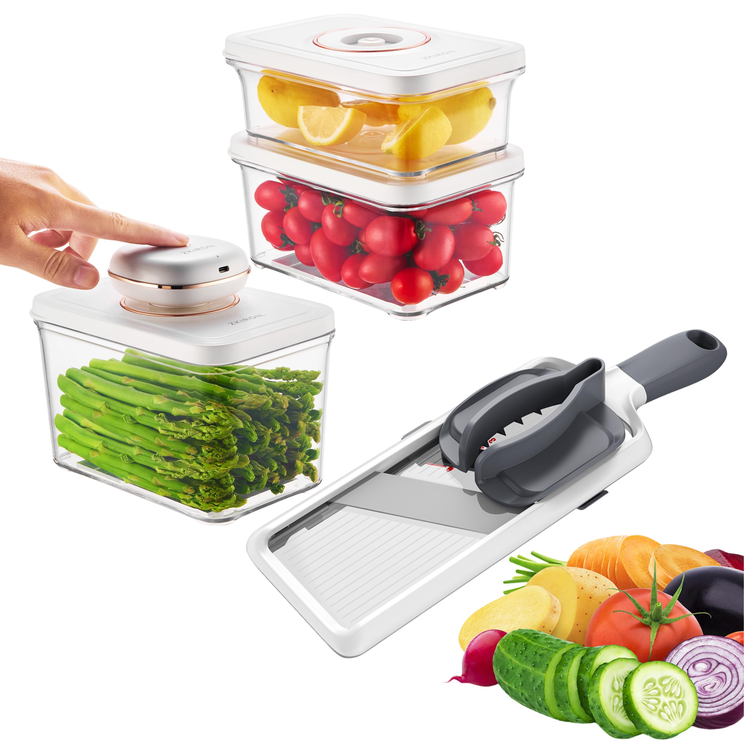 - SPEED UP YOUR COOKING -- Save time in the kitchen! Quickly slice fruits and vegetables like carrots, onions, tomatoes, or apples in seconds, giving you more time to enjoy your meals.
