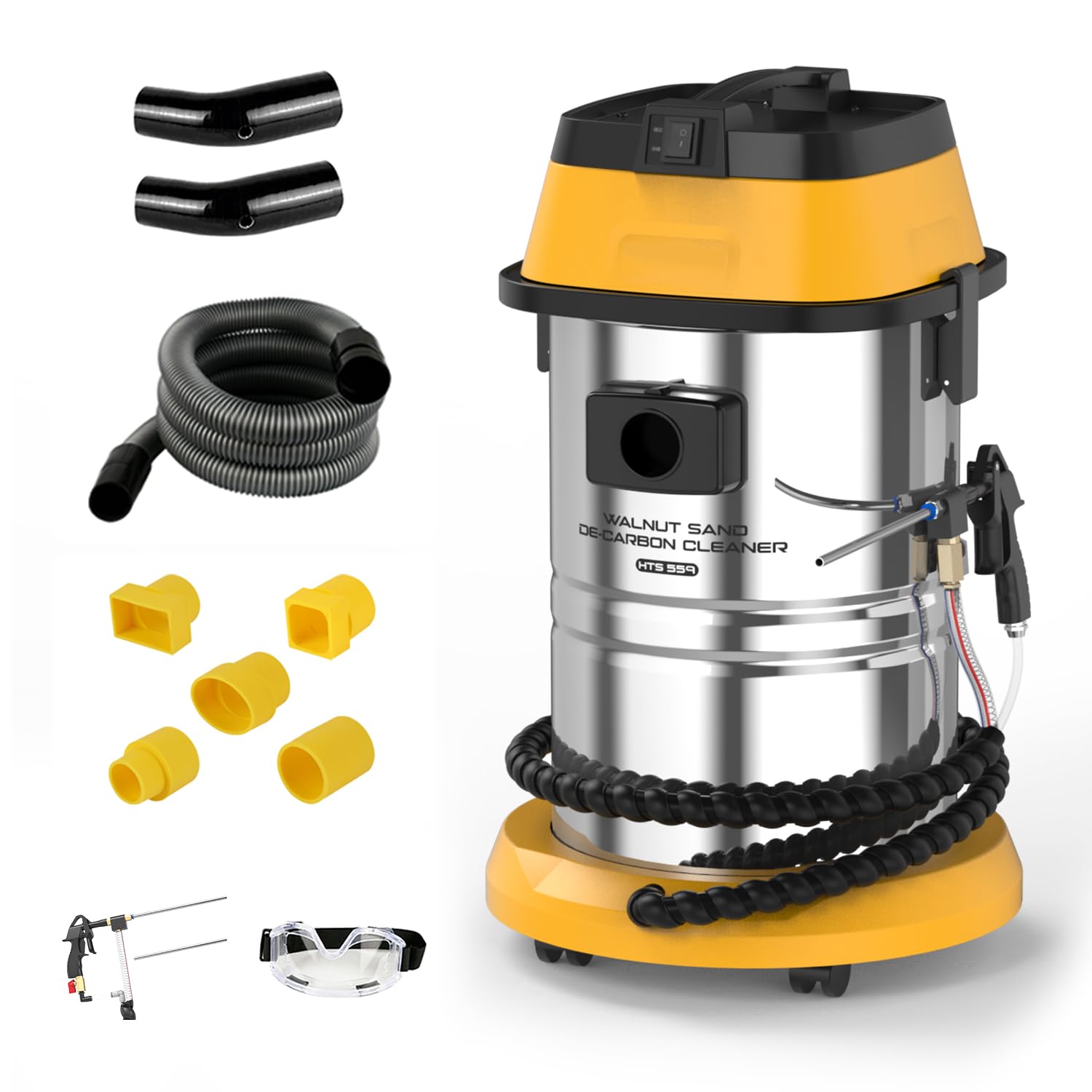 - ★【Simultaneous injection and recovery】Walnut blasteing special machine for cleaning the back of the engine intake pipe and intake valve. After closing the intake valve, the walnut sand is sprayed into the engine air intake through the air pump (not included), and the HTS558 recovers the walnut sand through vacuum. Because these two operations form a closed loop, walnut powder will affect the carbon deposition on the inner wall of the intake pipe.