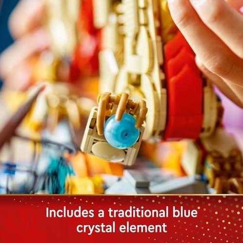 Usher in the Year of the Dragon with this majestic LEGO Spring Festival Auspicious Dragon figure (80112). A meaningful, symbolic cultural gift toy for yourself or kids ages 10 and up, this LEGO brick-built mythical creature features a tilting head and an opening mouth. Specially printed elements for the eyes and scales enhance its authentic look. The buildable dragon toy holds a traditional blue crystal element and is sitting on a brick built rock in the sea. Attach the nameplate to complete a dramatic display. A fun activity for any family’s Spring Festival celebration, the set includes easy to follow instructions, plus a beautiful illustration and description of the Auspicious Dragon’s significance to spark family conversations during the build. Download the LEGO Builder app for interactive instructions with digital zoom and rotate tools to enhance the creative experience. This educational toy for kids makes for a unique gift or perfect Spring Festival decoration, and complements other sets (sold separately) in the LEGO Spring Festival collection. Contains 1,171 pieces.