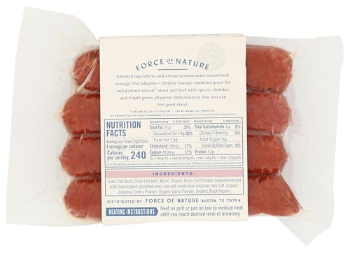 Force Of Nature Meats Regenerative Bison And Beef Jalepeno Cheddar Sausage, 10 Oz