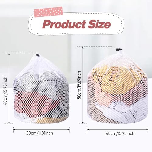2pcs Mesh Laundry Bags for Socks, Machine Washable Drawstring Design Travel Mesh Laundry Wash Bags White Drawstring Garment Bags for Laundry Storage for Home Dorm Hotel Travel Use,12x16inch, 16x20inch