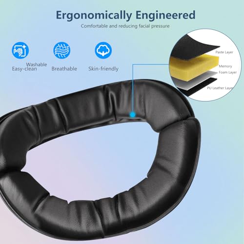 - STRESS RELIEF: Lightweight, gravity-balanced distribution of the headband reduces pressure on the back of the head. Soft memory foam and synthetic leather ensures comfort during extended use and reduces pressure on the face.