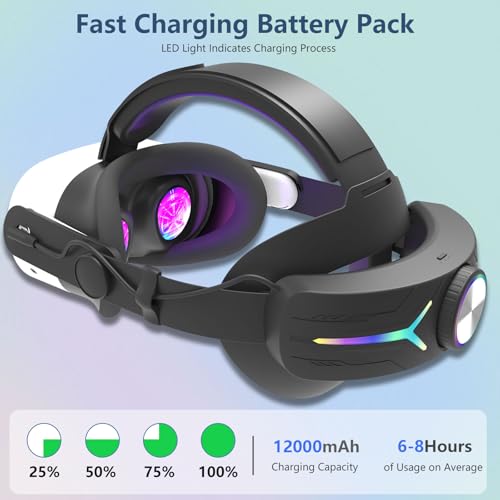 - Extended Battery & Fast Charging: 6-8 Hours of Uninterrupted VR Play – Our 12,000mAh battery strap doubles the runtime for Meta Quest 3/3S , eliminating power anxiety. Features 18W USB-C fast charging Enjoy your favorite VR games and apps without worrying about running out of battery.