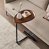 TRUNYAQI C Shaped Side Table, Small C Table End Table for Sofa and Bedside, Couch Side Tables That Slide Under, Wood C Shaped End Table for Bedroom Living Room, 18”L X 12”W