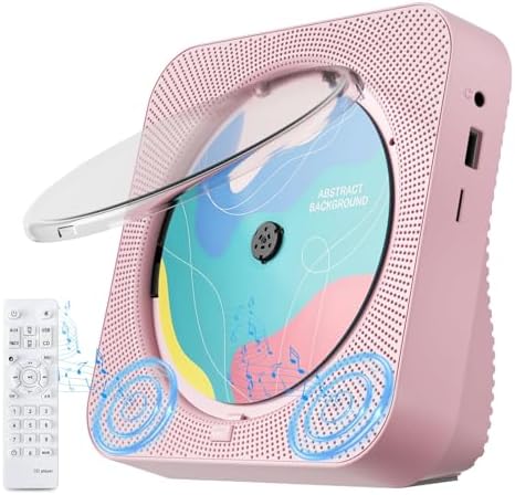CD Player Portable with Bluetooth 5.1Desktop CD Player with HiFi Sound Speakers,Remote Control,Dust Cover,LED Display,Boombox FM Radio,USB/AUX for Home (Pink)