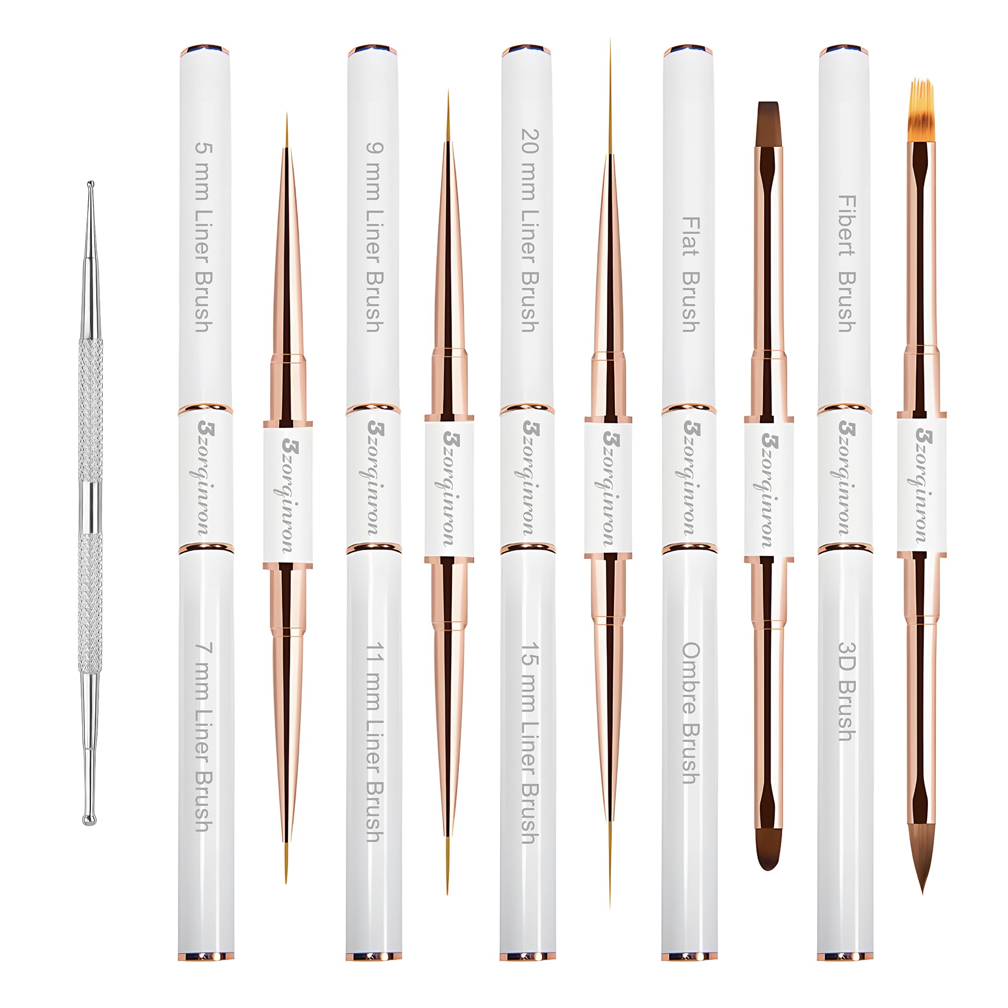 - 1. REMIUM QUALITY: 10 different nail art brushes Has up to 13 functions, made of quality fiber bristles, metal tubes, Wooden handle for various nail art needs. Your all-in-one nail polish pens set for all kinds of nail art designs