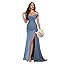 Women's Off Shoulder Ruched Bridesmaid Dresses Long with Slit Satin Formal Prom Dress VS018