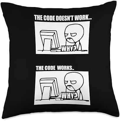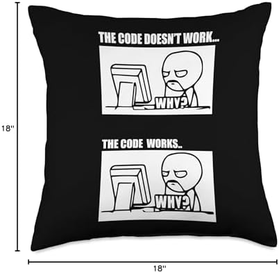 Novelty Sarcastic Computer Software Programmer Gag Funny Saying Code Doesn't Work Why Learning School Men Women Throw Pillow, 18x18, Multicolor
