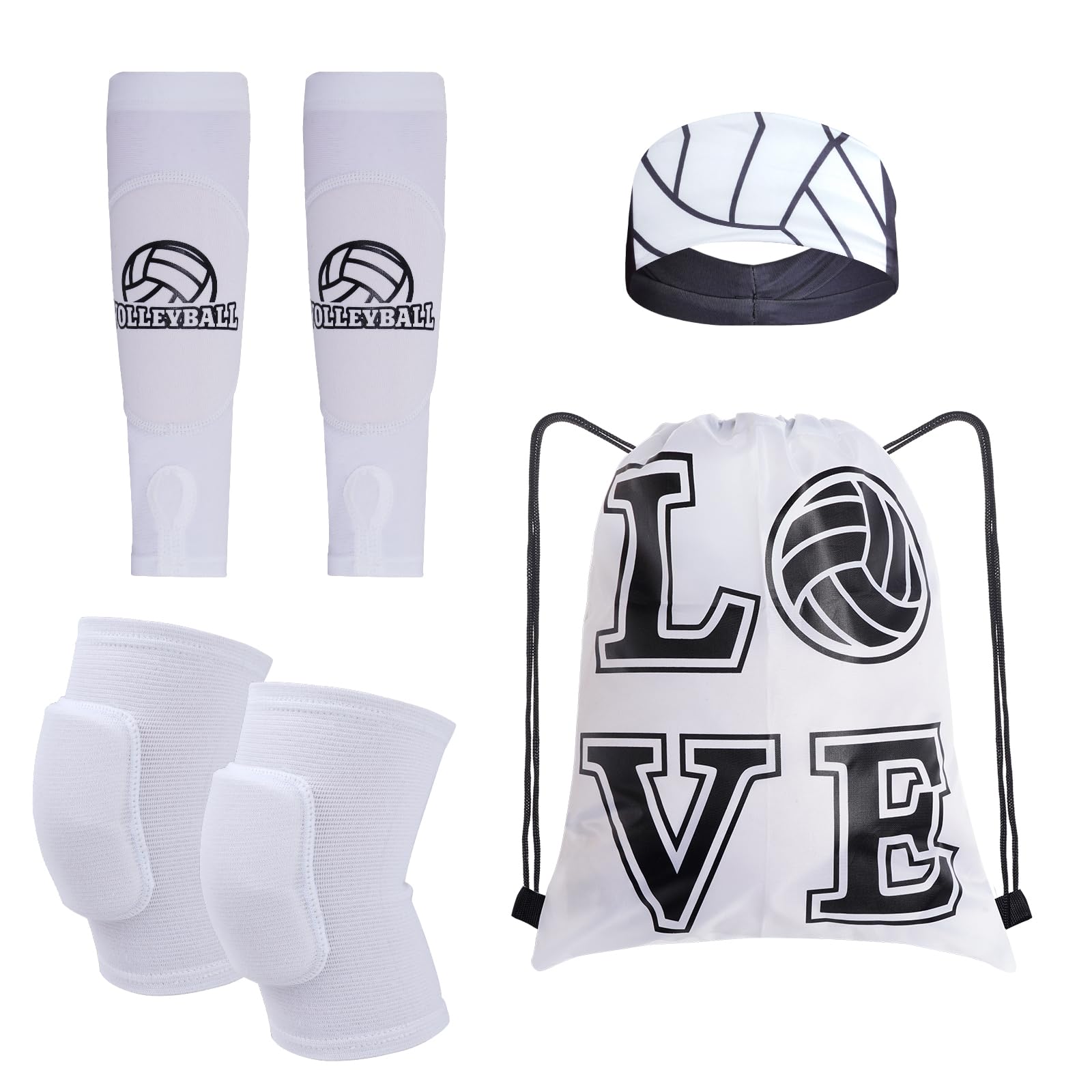 - Volleyball Accessories Set: Package include 1 pair volleyball arm sleeves, 1 pair volleyball knee pads, 1 piece volleyball drawstring bag, 1 piece volleyball softball headband, perfect volleyball training equipment combination for women youth teen girls.