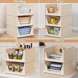 【Multi-Functional】The closet drawer are convenient to store your lightweight items such as shoes, clothes, toys, snacks, books, file etc. Suitable for bedroom, bathroom, kitchen, living room, office or study areas. Stylish neutral style, suitable for any place 【Slide Rails Design】The slide rail at the bottom of the closet is convenient, and even in the innermost part, you can easily remove items.The boxes can only be pulled out halfway, so they can't slide out completely like drawers. If you want to use them like chests of drawers, try leaning them against a wall so the wall can support part of it 【Assembly Easily & Stackable】Wardrobe clothes organizer, easy to Install, easy to foldfollow the steps in pictures.If you don't want to use them, you can take them apart and put them away without taking up space.Dimensions of each when set up:16.6" x 13.1" x 7.32" (L x W x H) 【Durable & Sturdy】These stackable storage drawers bins made of hard PP plastic which is waterproof, only wipe it with wet cloth for daily cleaning 【Easy to Use】Slide rails on bottom of shelf helps to pick things even it’s in most inner. 3 steps only to set up one clothes basket or fold them and put in a corner without taking up space