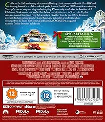 - Celebrate the 35th anniversary of an essential holiday classic, remastered for 4K Ultra HD™ and featuring hours of never-before-released special features. Frank Cross (Bill Murray) is a modern-day “Scrooge”– a mean, nasty, uncaring, and unforgiving TV exec ready to unleash a live broadcast of A Christmas Carol around the world. But, before the night is over, he’ll be visited by his dead-as-a-doornail boss (John Forsythe), a maniacal cab driver from the past (David Johansen), a present-day fairy packing punches (Carol Kane), and a ghoulish, seven-foot headless messenger from the future. Both hysterical and heartfelt, SCROOGED is an updated take on a familiar favorite. Yule love it! Special Features: • Commentary by Director Richard Donner • A Christmas To Remember • Updating Ebenezer • Bringing The Ghosts To Life • The Look Of Scrooged • On The Set With Bill Murray • ShoWest Clips With Bill Murray Languages: English - United States DTS-HD Master Audio 5.1 Surround / French - Parisian, German, Italian, Spanish - Castilian Dolby Digital 2.0 Stereo L/R / Spanish - Latin American Dolby Digital 2.0 Mono Subtitles: English - United States / English - United States SDH+ / Danish / Dutch / Finnish / French - Parisian / German / Italian / Japanese / Korean / Norwegian / Spanish - Castilian / Spanish - Latin American / Swedish