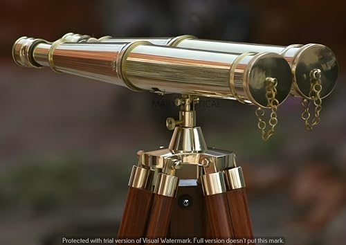 - 🔭 EXCELLENT CRAFTSMANSHIP & UNIQUE DESIGN Handmade in a classic retro style, these 18-inch functional binoculars are crafted from solid polished brass for a shiny, eye-catching finish. Mounted on a 62-inch adjustable wooden tripod, this piece stands tall as both a decorative and functional item.