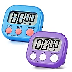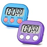 2 Pack Pack Digital Kitchen Timer Magnetic Digital Timer with Big Display Loud Ring Cooking Timers for Cooking, Game, Gym, Break Time, Classroom (2, Blue, Purple)