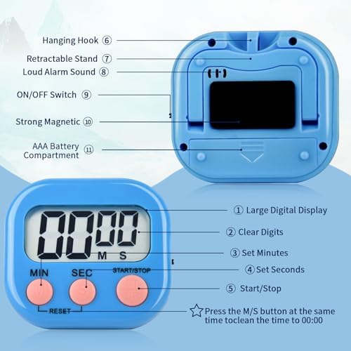 - Magnetic Button Design: The back of the kitchen timer has a strong magnetic and bracket design, which can be adsorbed on the refrigerator, blackboard or wall, and can also be flat on the table. Large screen display timing and loud audio bell, timing is more suitable for kitchen, fitness.