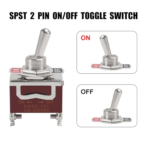 - 【Function】 Waterproof toggle switch with 2 pin SPST design (single pole single throw), easy to turn ON OFF. The rating of this heavy duty toggle switch is 30A 12VDC; 15A 250VAC; 20A 125VAC.