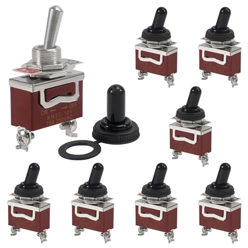 - 【High Quality】The waterproof toggle switch is made of metal and bakelite.The shaft, bracket and terminal of the switch are made of copper and nickel plating material. The main body of the switch is made of bakelite material.