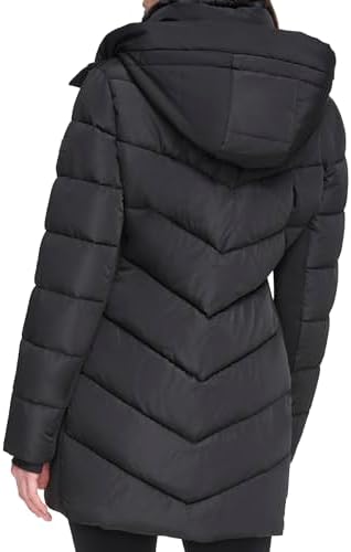 This Calvin Klein Women's Outerwear Jacket is a Long Bib-Front Puffer