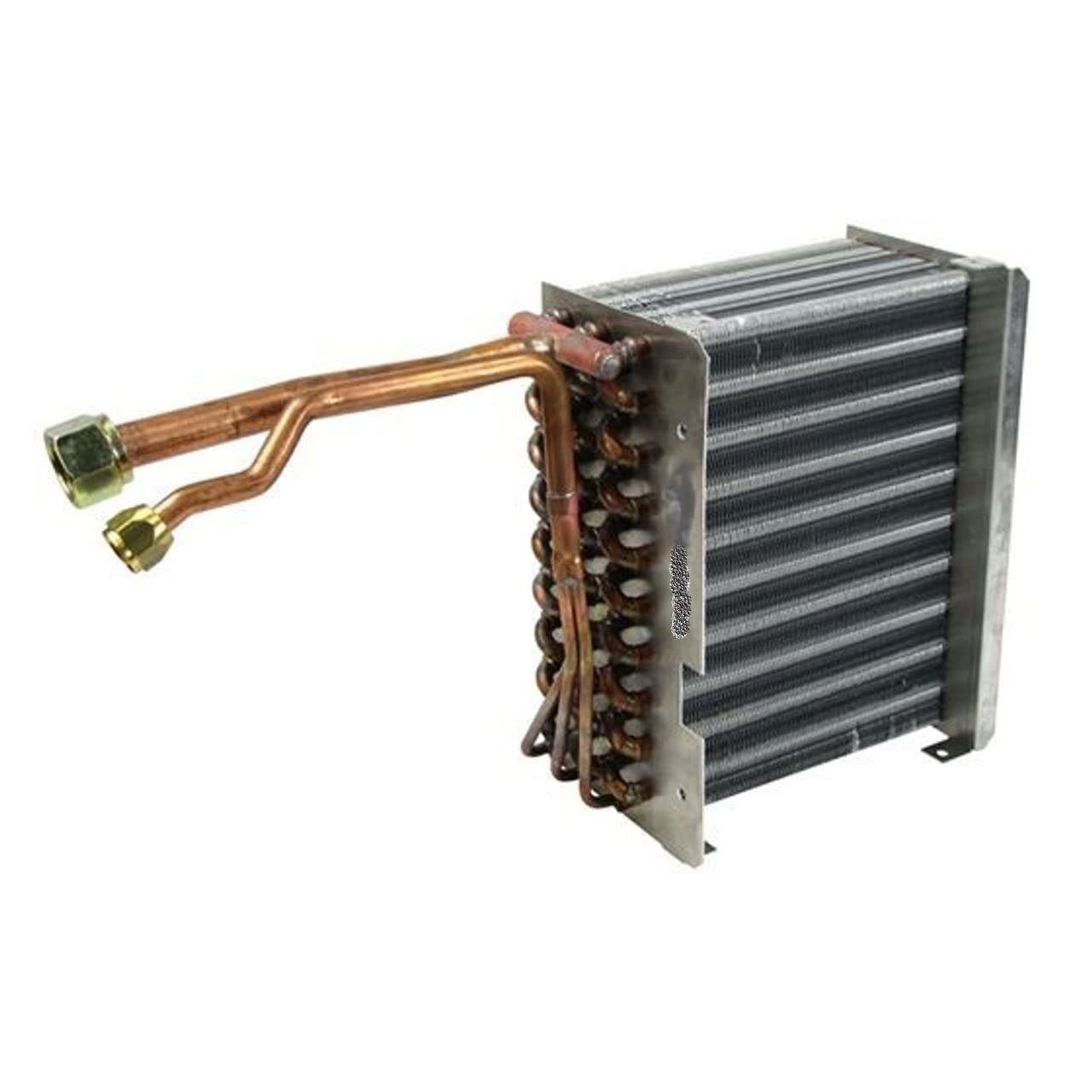 - Universal Under-Dash Evaporator Unit Model: E-432-0DCSL 4 OUTLETS 2.5" 10' FLEX HOSE 4 CHROME STAR LOUVERS VENTS Cool Only 32 pass 4way all aluminum coil Expansion valve 1.5 Ton Thermostat and rotative 3-speed blower switch 12 VOLTS DOUBLE SHALF BLOWER MOTOR Mounting bracket drain hose and T included 12,700BTU capacity 359 CFM DIMENSIONS: L14½" X D12½" X H6"