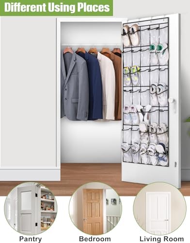 - 【Easy to use】: The plastic shoe hanger over the door fits most doors, you can not only easily hang it behind the door, but also put it in the closet, pantry, bathroom, garage and other places, it is 24.5” wide and does not fit narrow doors