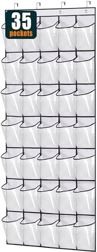 - 【Space Saving Idea】: Over the door shoe holder measures 68.5" H x 24.5" W, has 35 large pockets, Which can make full use of the space behind the door while keeping your shoes organized