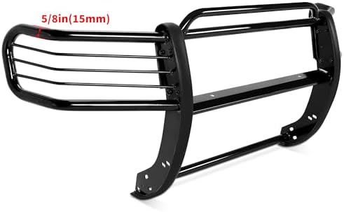 - Material: It is made of high-strength steel, which is more solid and strong, impact resistance, not easy to break. Black powder coated front bumper grill guard has good rust resistance and flat-out good looking