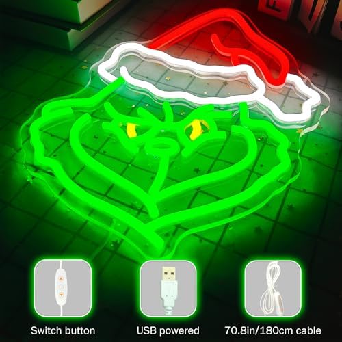 - Versatile Usage:This Christmas light up signs for wall decor themed after the popular cartoon character is versatile. You can use it indoors or dry outdoors to hang the Christmas neon wall signs in your living room, bedroom, office. You can even use it as a decorative piece in a shop window or at a Christmas party to spread the Christmas cheer