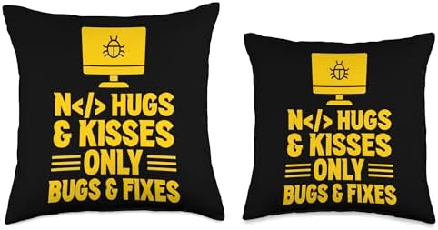 Programming Developer Job Developing It Software No Hugs & Kisses Only Bugs & Fixes Coder Coding Throw Pillow, 16x16, Multicolor