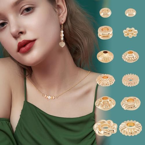 • Package Includes: 120 pieces of spacer bead set, 12 styles, including flowers, columns, discs, flat circles, etc., in gold color, with sufficient quantity to meet your DIY production needs. Exquisite design enhances your elegant and noble temperament.