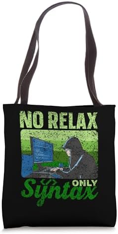 No Relax Only Syntax Programmer Coder Code Sayings Coding Tote Bag