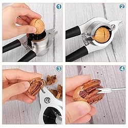 【Stainless Steel Nut Cracker】-Made of heavy duty stainless steel,this walnut cracker is extremely strong and solid,fits for cracking all kinds of big nuts,such as walnuts,pecans,hazelnuts,almonds and so on! One nut cracker for all nuts![Doesn't fit for small macadamia!] 【Easy Cracking Design】-This nutcracker has a large and deep funnel which is equipped with groove pattern, helping to quickly expand the cracks and easily break the hard shell,protecting the nuts from squeezing or destroying while keeping the shells inside the funnel.The plier on the top is designed for small nuts,such as sunflower seeds,pine nuts,almonds etc.,. 【No-slip Handle,Easy Grip】-The handle of this pecan cracker is made of high quality non-slip PP material,which is comfortable for holding.The ergonomic spring-loaded design can help you control the force easily and save much strengh when cracking nuts,making cracking nuts an easy job! 【2 Picks for More Convenience】-You'll also receive 2 Pcs of stainless steel picks.They can reach the inside of shells to help you pick out the nut cores easily. They're slim and lightweight for convenient daily use and storage. 【Great Present Choice】-This nut cracker for all nuts is not only a nut cracker tool applied daily by the family, but also a good helper for nut shops, bakeries, restaurants, candy shops, etc.It is so helpful and convenient that it can be an adorable Present for your friends,neighbors,nut lovers on Christmas,Thanksgiving and many other occasions.