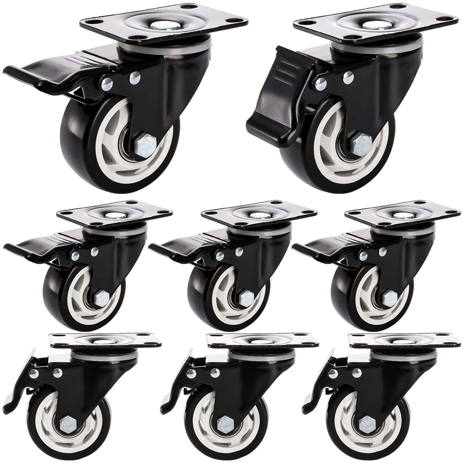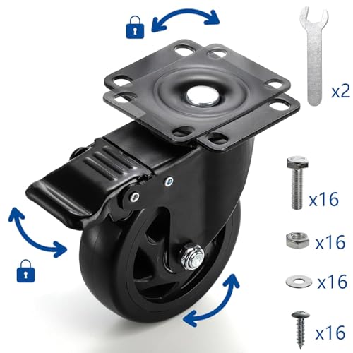 - 2 hardware kits included, 16 pointed screws with 16 washers, 16 flat hex bolts with 16 nuts, plus 2 spanners, ideal for 2 different ways plate caster installation on steel material and wood material