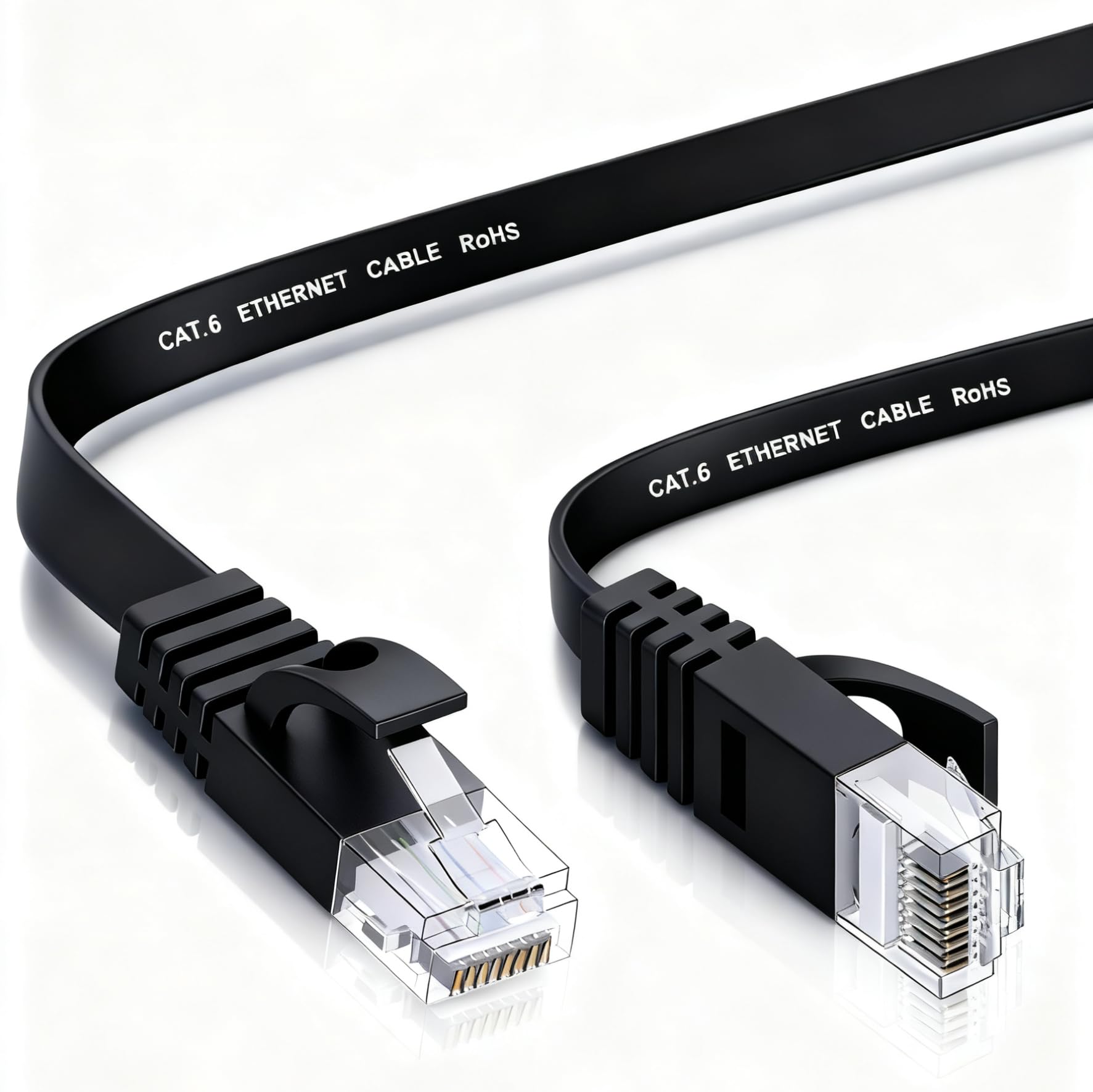 3Ft Cat6 Flat Ethernet Network Cable Black