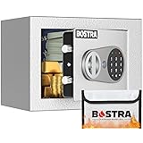- [Latest Intelligent Light Design for More Convenient]: Bostra small safe box for money automatically turns on the smart light after you open the fire proof safe boxes for home by Using Passcode. Its brightness reaches the brightest for 30 seconds, then slowly goes out automatically, making it easy for you to see the internal items easily even in the dark. In addition, indicator light of fire safes for home will remind you battery is about to run out by lighting up a red light [Cash Safe Box & Fireproof Bag - Excellent Safety Performance]: Made of reinforced solid steel, safe box for money has a laser-cut thick door, enhanced steel bolts and pry-resistant concealed hinges, making others can't use violence to open it. An extra fireproof bag is also provided, which is perfect to keep your money, cash safe. The combination of money safe box and fireproof waterproof bag give your valuables double protection and protect it from fires, hurricanes and earthquakes [2 Ways to Open the Fireproof Safe Box with Necessary Alarm System ]: You can set a password for your personal safe so that you can open it quickly. In case forget the password or battery runs out, you can open small fireproof safes for home by override keys.To prevent password guessing, our fireproof lock box offers security lockout system: if an wrong password is entered 3 times in a row, small fireproof safe will begin a warning beep and a security lockout period [Smart Safe for Money - Easy To Hide]: With 0.23 Cubic Feet (Exterior Size: 6.6"x9"x6.5"), Bostra lock box for money is easy to be placed in wardrobe, shelf, drawers or bedside tables as a hotel safe, closet safe, wall safe, dorm safe and fireproof safety box. This small safes for home is perfect to protect your privacy items out of view.