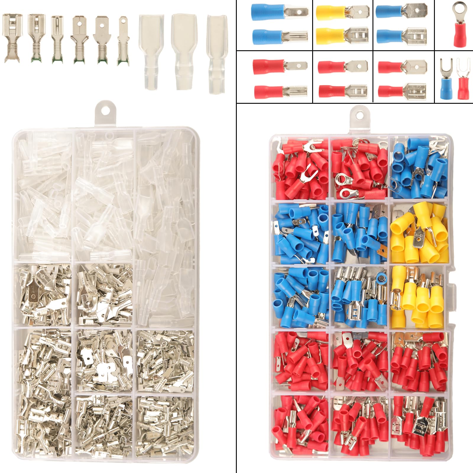 - [What will you get from this package] You will get a box of 540pcs spade connectors kit. The package includes 60pcs 2.8mm male and female spade connectors kit, 60pcs 2.8mm insulating sleeves, 60pcs 4.8mm male and female spade connectors kit, 60pcs 4.8mm insulating sleeves, 60pcs 6.3mm male and female spade connectors kit, 60pcs 6.3mm insulating sleeves.