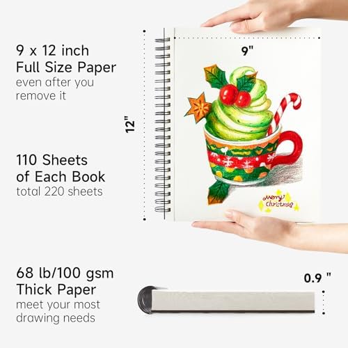 Shuttle Art 9x12” Sketchbook, 220 Sheets Total, Pack of 2(110 Sheets Each), 68lb/100gsm Thick Paper, Spiral Bound Mixedmedia Sketch Pad, Acid-free Drawing Pad for Kids Adults Artists Sketching Drawing