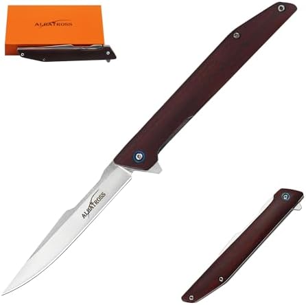 ALBATROSS Premium Folding Pocket Knife - EDC with D2 Steel Blade 3.5", Yellow Sandalwood Handle, Ball Bearing Assisted Open, Outdoor Camping Survival Tool with Handmade Gift Box