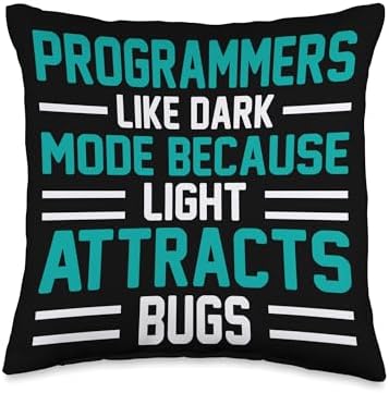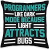 Computer Science Geek Coder Programmer Clothing Programmers Like Dark Mode Because Light Attracts Bugs Throw Pillow, 16x16, Multicolor