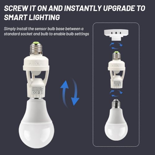 E27 Sensor Lights Socket, Motion Sensor Light Socket 10-300 Sec Delay, 6m Sensing Distance, IR Motion Activated Lamp Holder for Basement, Garage, Staircase (100-240V)