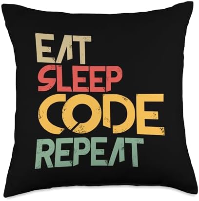 Programmer Software Developer Coder Apparel Co. Eat Sleep Funny Coding Computer Programmer Men Women Throw Pillow, 18x18, Multicolor