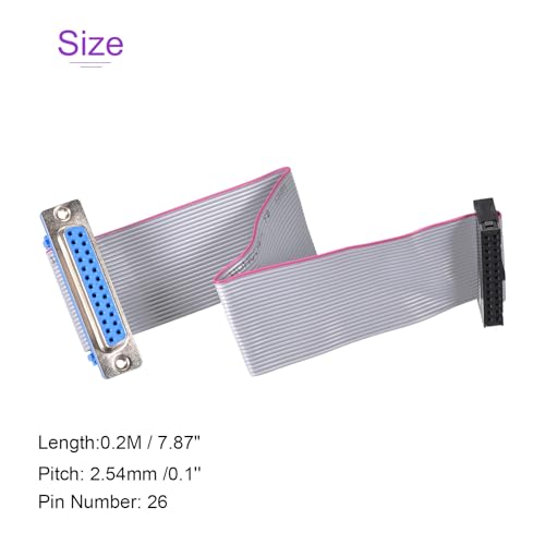 - SIZE:Pin Number: 26,Pin Pitch: 2.54mm / 0.1 Inch,Length:0.2M / 7.87 Inch,Color:Grey,Connector Type: DB25 Female to FC-26
