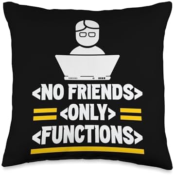 Developing Programming It Software Job Developer No Friends Only Functions Coder Programmer Coding Throw Pillow, 16x16, Multicolor
