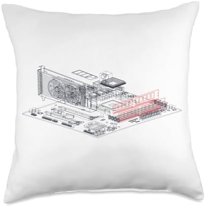 Egghead Fixers Graphics Card Wireframe, Computer GPU IT Tech Geek Nerd Gift Throw Pillow, 18x18, Multicolor