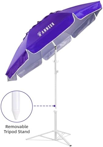 AMMSUN Shade Umbrella, Premium Portable Umbrella with Stand, 6.5ft Lightweight Free Standing Canopy for Sporting Games, Adjustable Instant Sun Protection and Easy to Carry, Purple