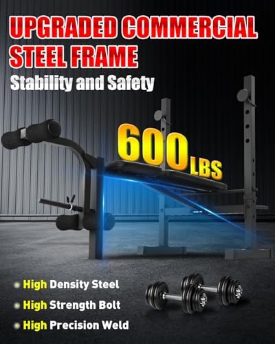 - 【Sturdy&Stable Structure】This weight bench features a stable triangular structure combined with high-quality, thick materials to ensure your safety and stability during workouts. Weight plates can be placed on the weight tubes at the front and back of the bench to further enhance its stability. Additionally, the non-slip rubber pads not only protect your floor from scratches but also ensure your safety during exercise.