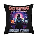 SENIOR PHP DEVELOPER Gifts Senior PHP Developer Funny Gamer-Fun Pun Gaming Throw Pillow, 18x18, Multicolor