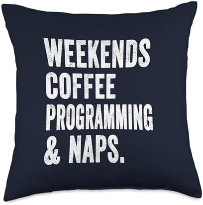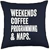 Programming Shirts & Coffee Lovers Gift Store Weekends Coffee Programming and Naps Shirt Code Debugger Dad Throw Pillow, 18x18, Multicolor