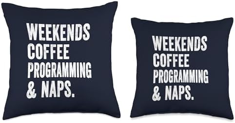 Programming Shirts & Coffee Lovers Gift Store Weekends Coffee Programming and Naps Shirt Code Debugger Dad Throw Pillow, 16x16, Multicolor