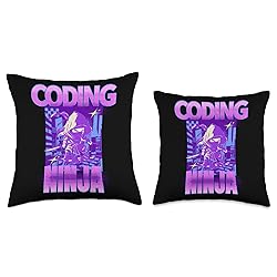 Ninja Coding Anime Programmer Print Coding Ninja Funny Anime Programmer Print Throw Pillow, 18x18, Multicolor