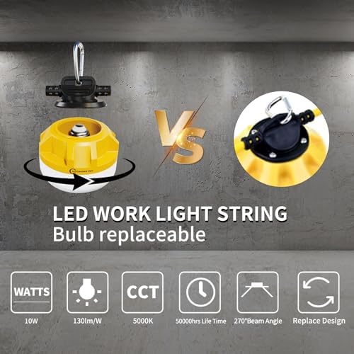 - 🔄 Replaceable Bulbs & Long Lifespan: Voominhtec's work string light features a user-replaceable bulb design. If a bulb fails, simply swap it with the included spare—no need to scrap the whole string! This smart design extends the product's service life, potentially up to 10 years with proper use.